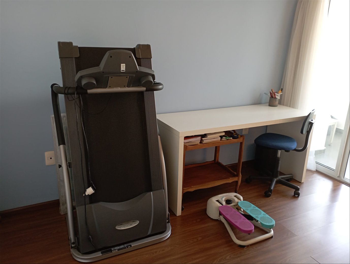 Segundo dormitorio cuenta con una cama con colchón, ropero, mesa de luz y escritorio, con terraza incluida.