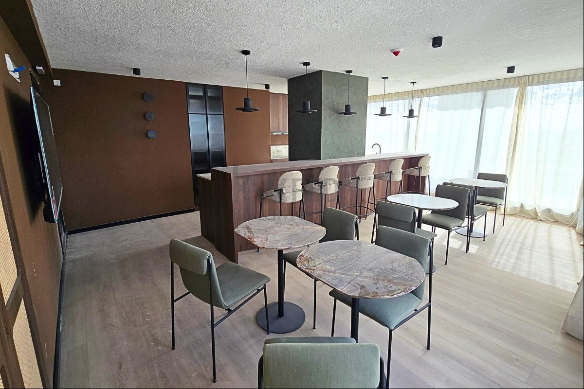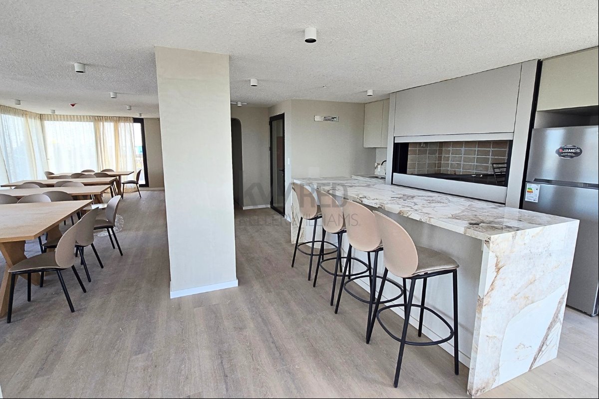 Cocina integrada con doble mesada, muebles bajo y sobre mesada, anafe, campana y horno empotrado ya incluidos.