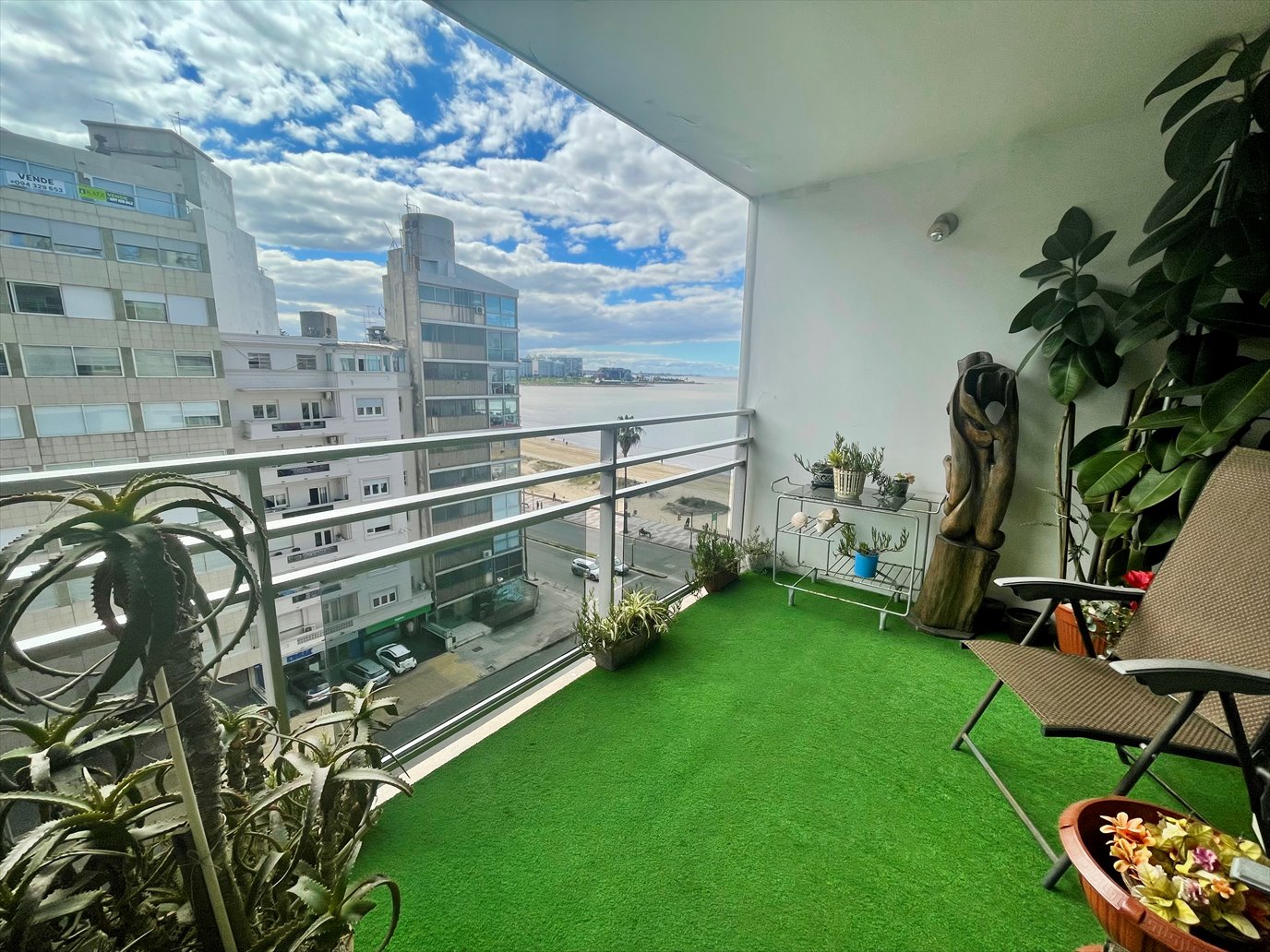 Venta de muy buen apto de 2 dormitorios y servicio completo en sólido edificio, en una ubicacion esplendida a media cuadra de la rambla, con vista lateral al mar.