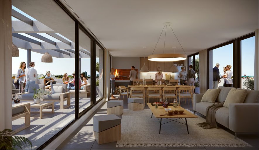 Además proporcionará a todos sus habitantes la posibilidad de sentirse como en un resort, en su propio hogar ya que contará con un gran numero de exclusivas amenities: SUM con parrillero, piscina infinita, deck solárium, gimnasio equipado, sky lounge, co-work, outdoor fitness, jardín zen, microcine, área de bicicletas, locker room y conexión autos eléctricos.