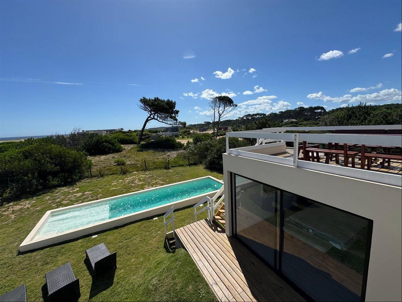 Casa de diseño minimalista y construcción tradicional, enclavada en los médanos de Tío Tom y Chihuahua, con salida directa a la playa.