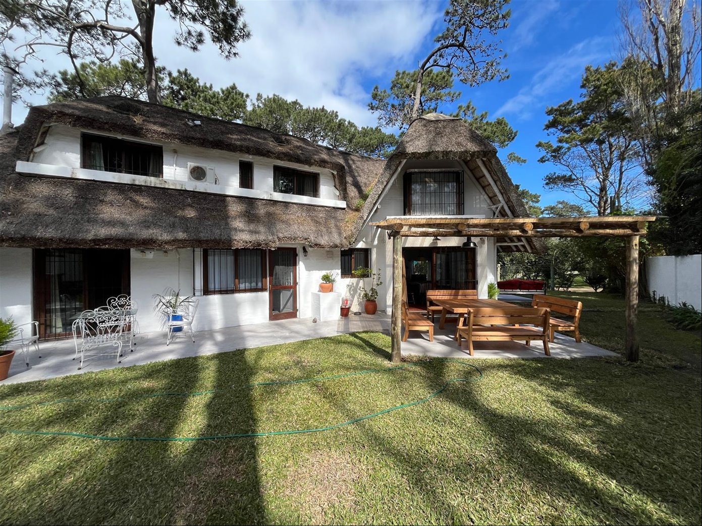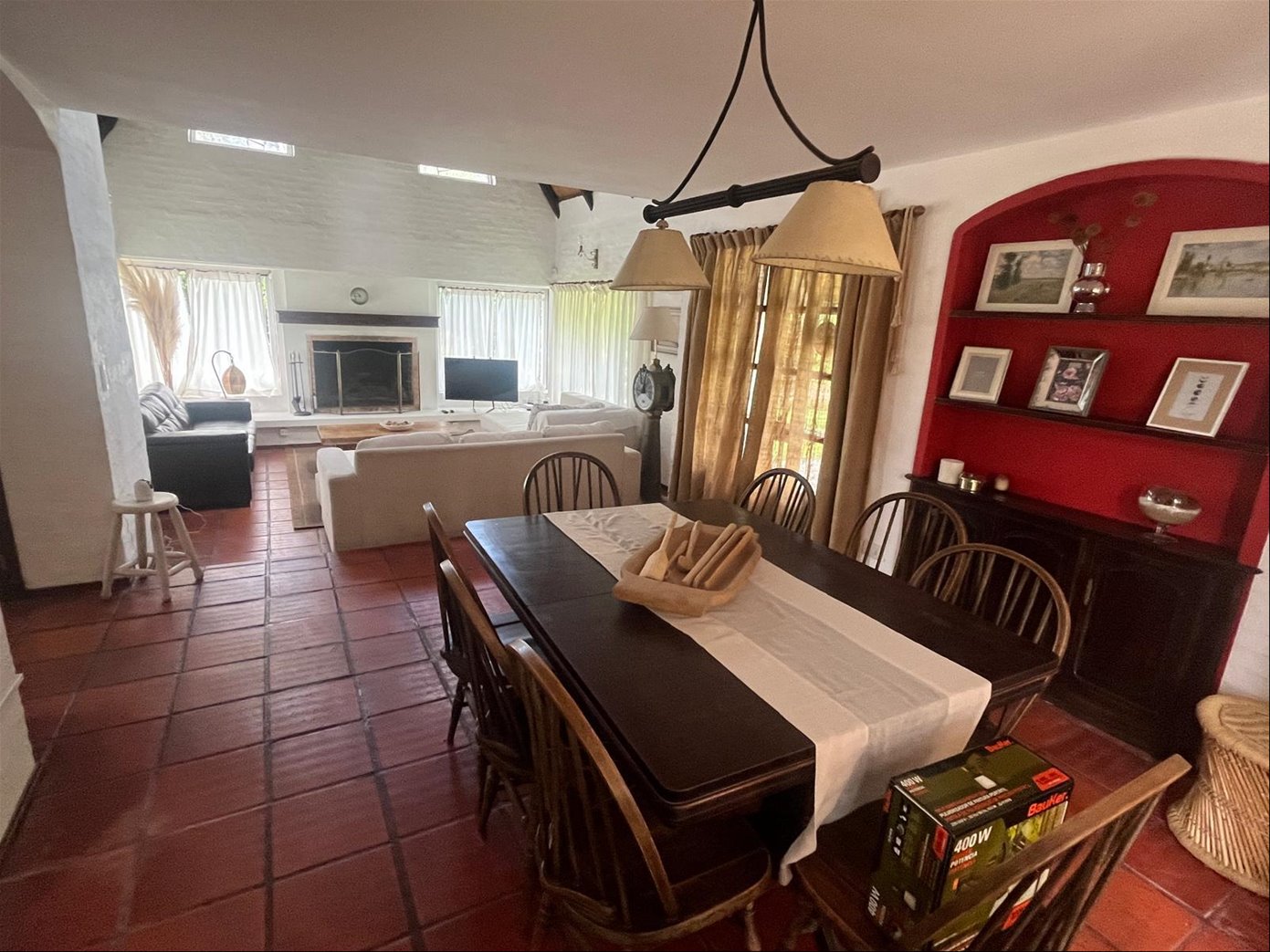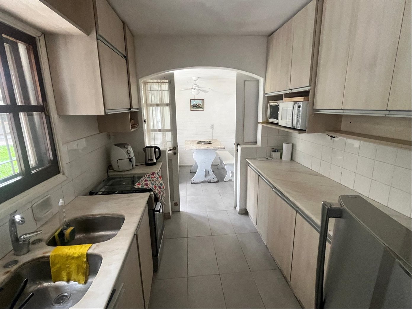 Living, comedor, estar, cocina con comedor diario, 3 dorm, 2 baños ) (1 en suite), gge, fondon con buen estar, muy lindo parrillero techado, dependecia de servicio con baño, sala de lavadero.