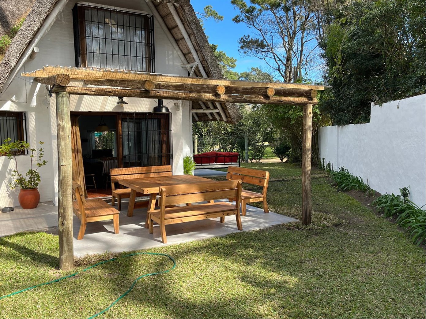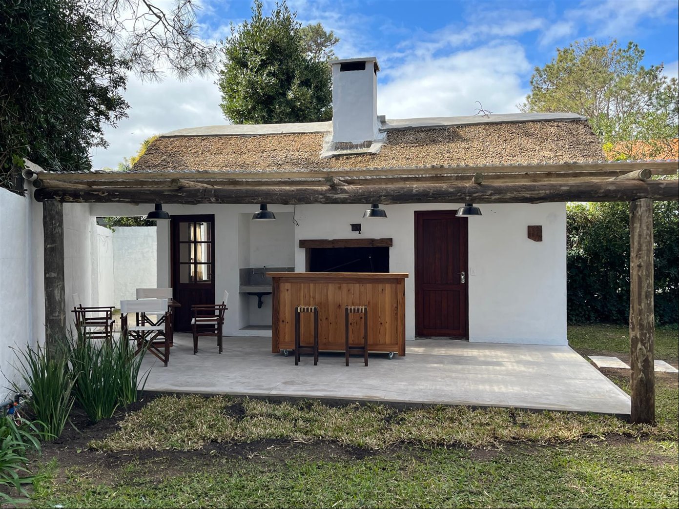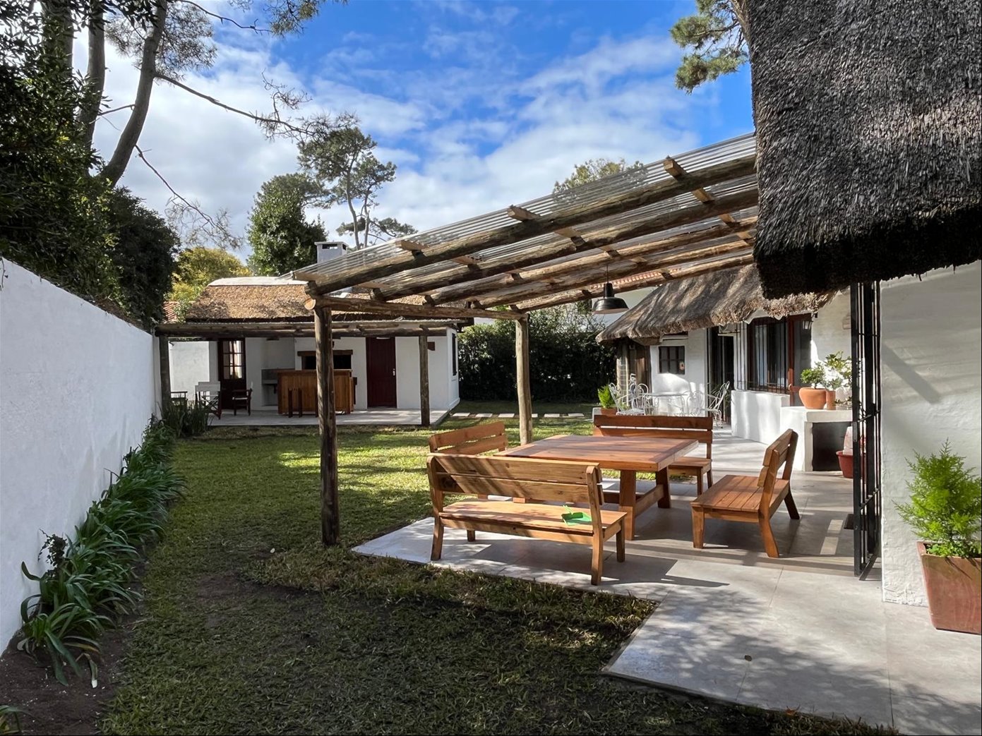 Living, comedor, estar, cocina con comedor diario, 3 dorm, 2 baños ) (1 en suite), gge, fondon con buen estar, muy lindo parrillero techado, dependecia de servicio con baño, sala de lavadero.
