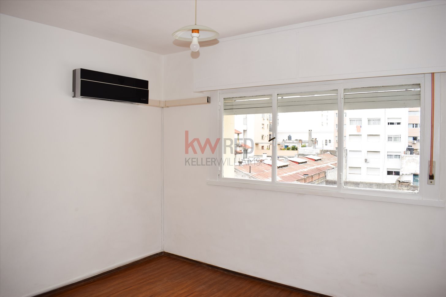 Dormitorio de buen tamaño con aire acondicionado, placar y ventanas amplias.