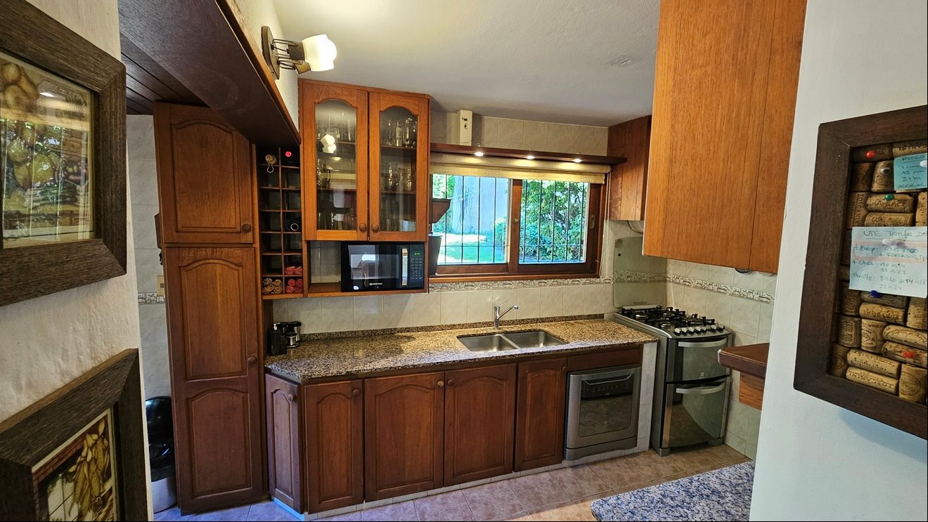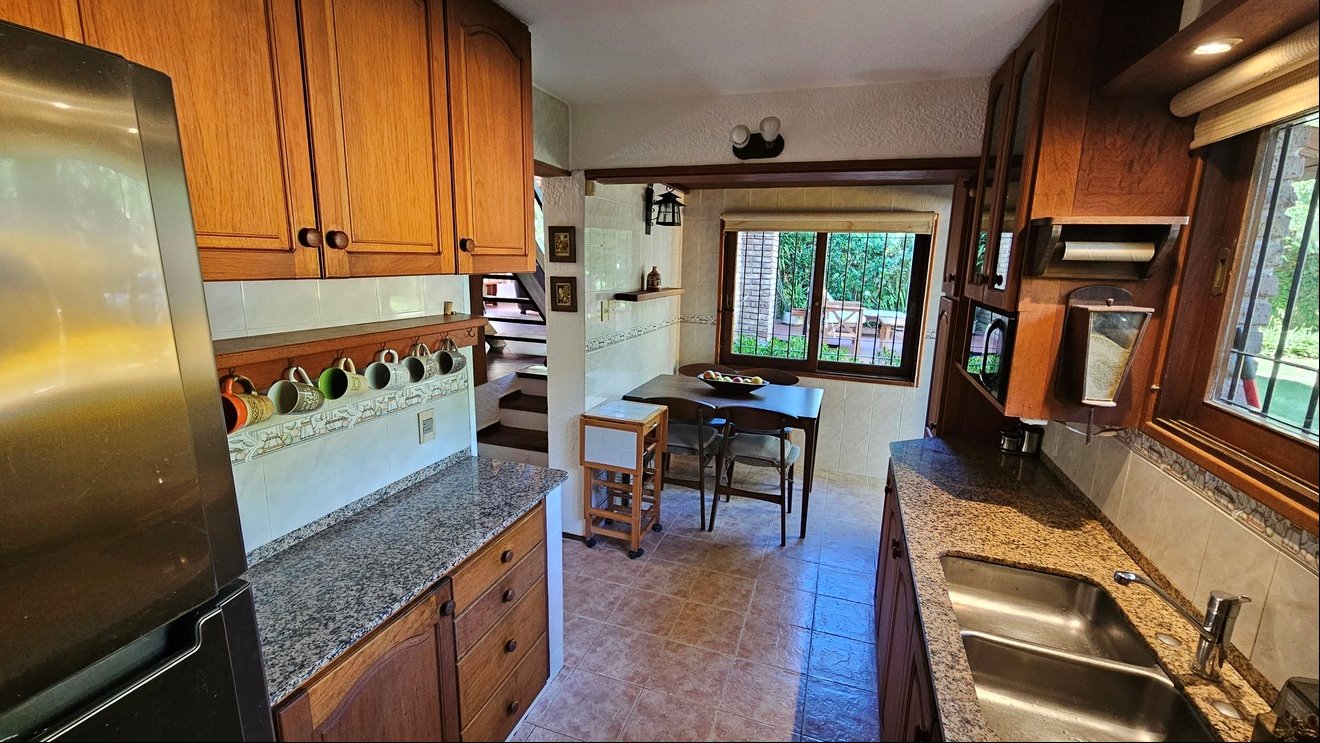 Cocina definida con desayunador y salida directa al jardín