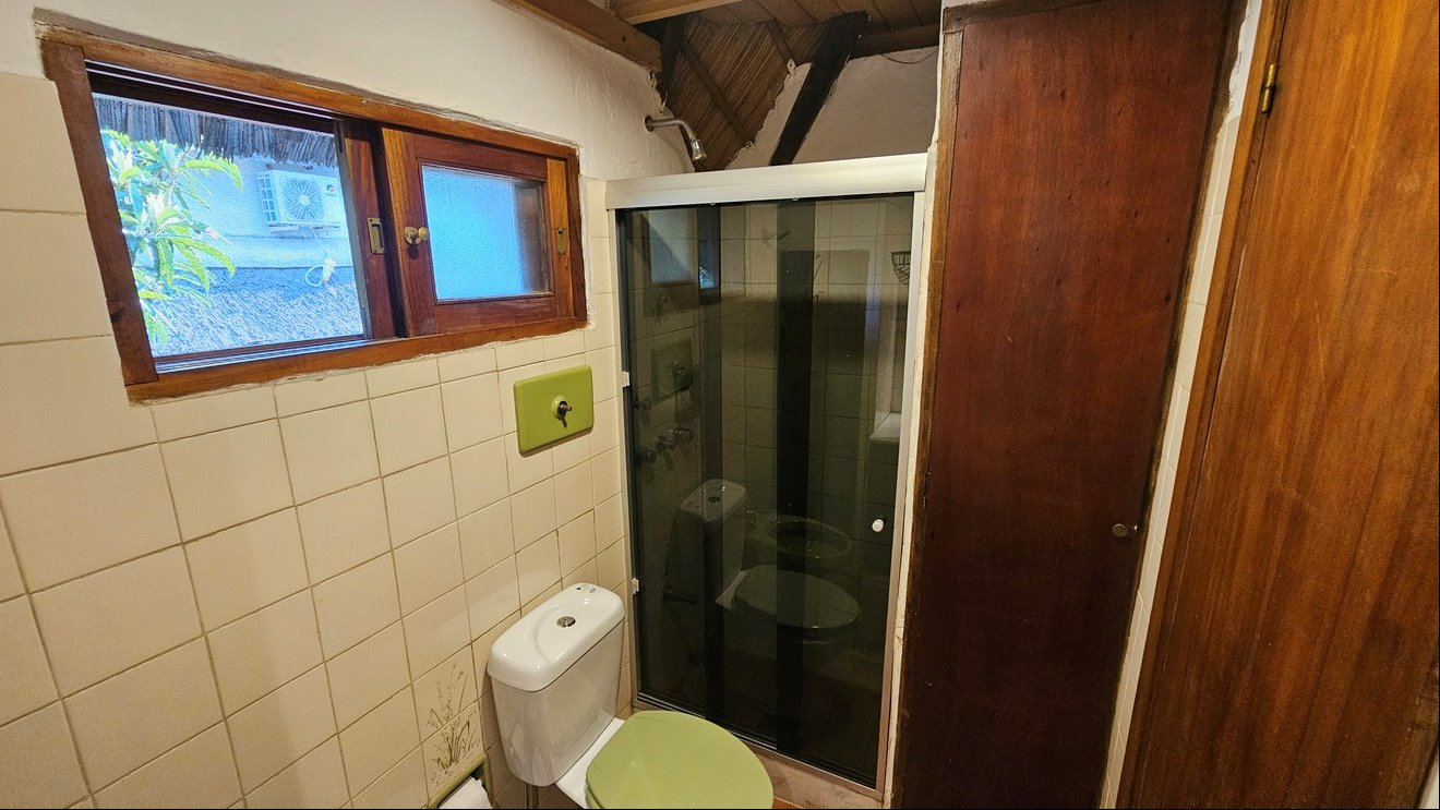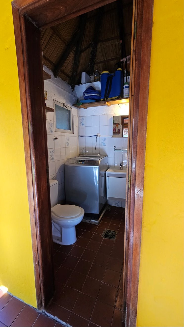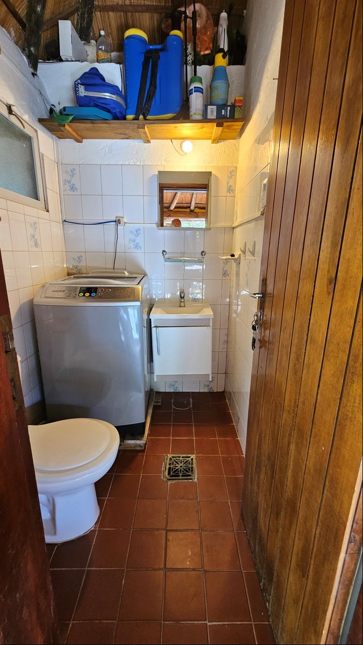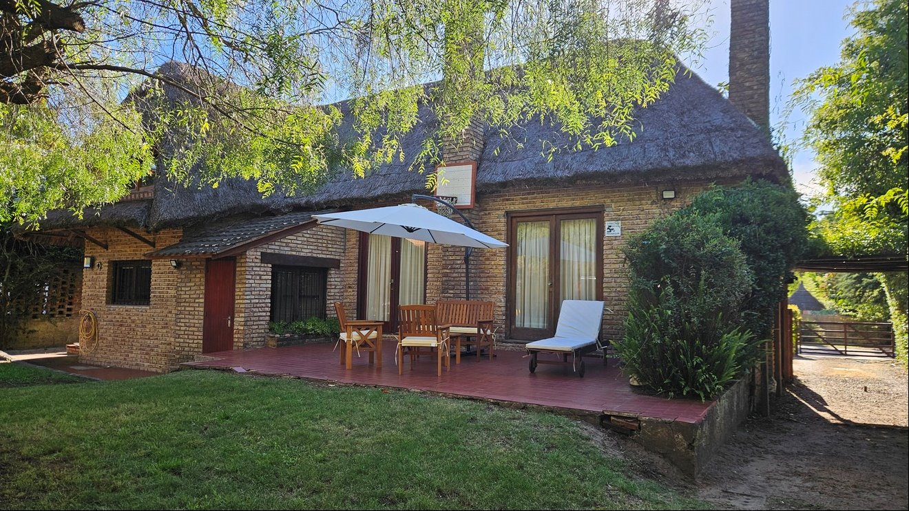 Jardín trasero con barbacoa techada, ideal para reuniones, además de un servicio completo con baño.