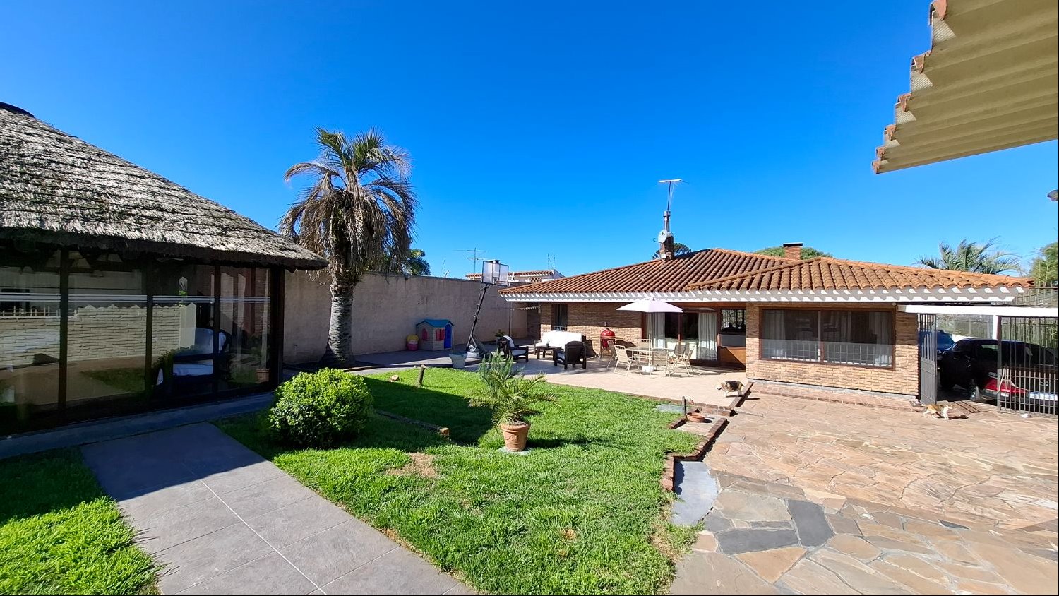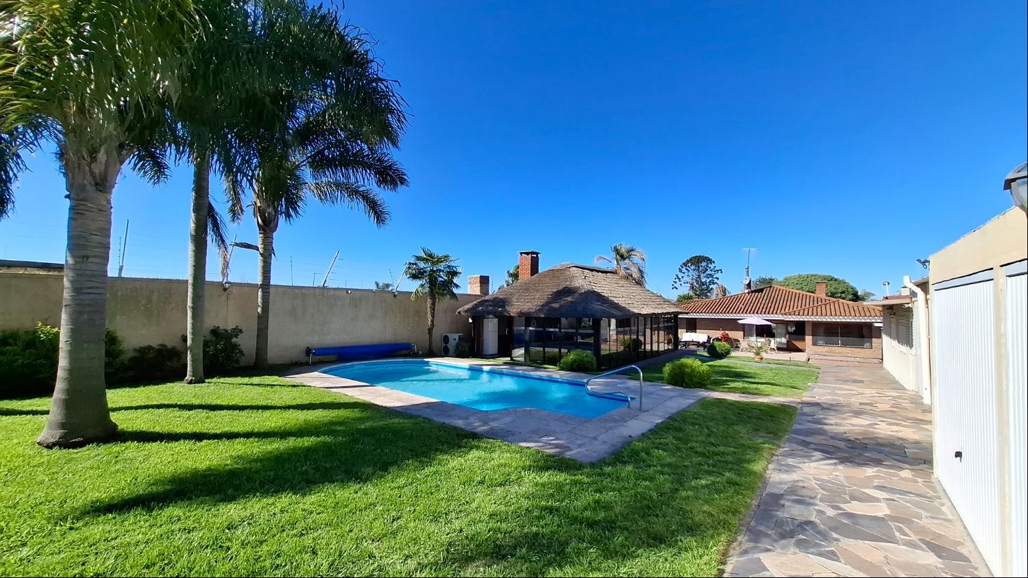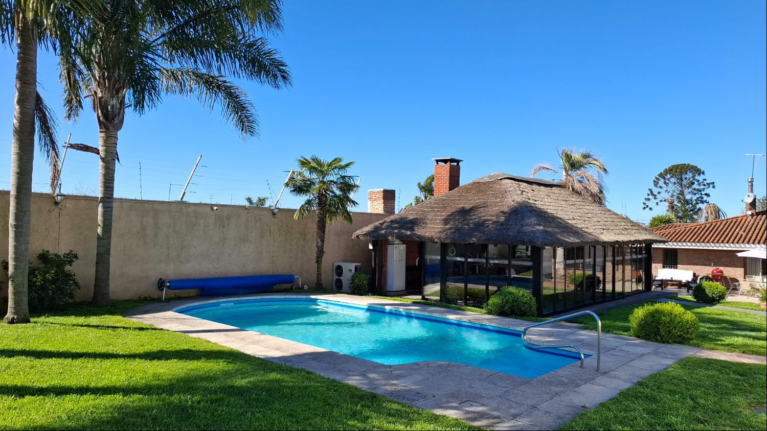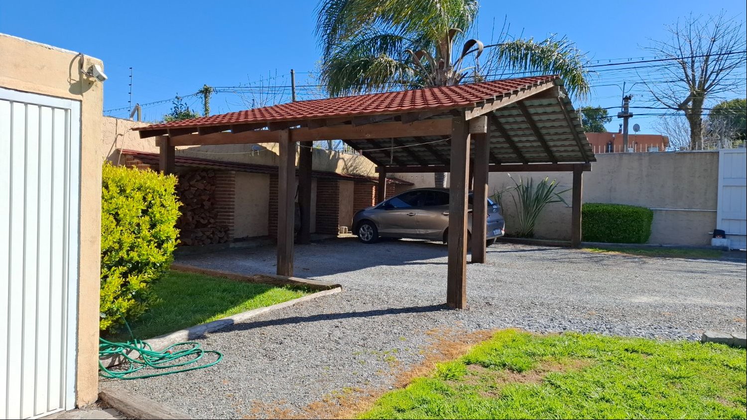 El exterior de la propiedad es un verdadero oasis. Una barbacoa equipada invita a reuniones sociales y familiares, mientras que la piscina ofrece un espacio refrescante para los días cálidos. Cuenta con garajes para 5 autos y cochera para 3 vehículos mas. La casa está en muy buen estado y equipada con placares, calefacción por estufa a leña. Ubicada en una zona tranquila y segura de La Paz a 30 minutos del centro de Montevideo.