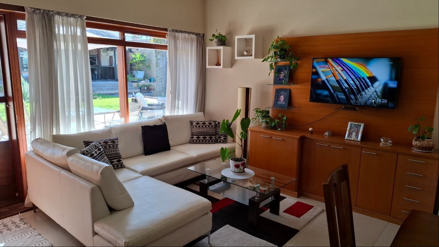 EL terreno cuenta con salida por dos calles permitiendo un acceso cómodo. El interior está diseñado para el disfrute y la vida cotidiana, con una cocina definida, un espacioso comedor, un estar acogedor, un escritorio perfecto para trabajar o estudiar, y un lavadero independiente. Para el personal de servicio, dispone de dormitorio y baño propios.