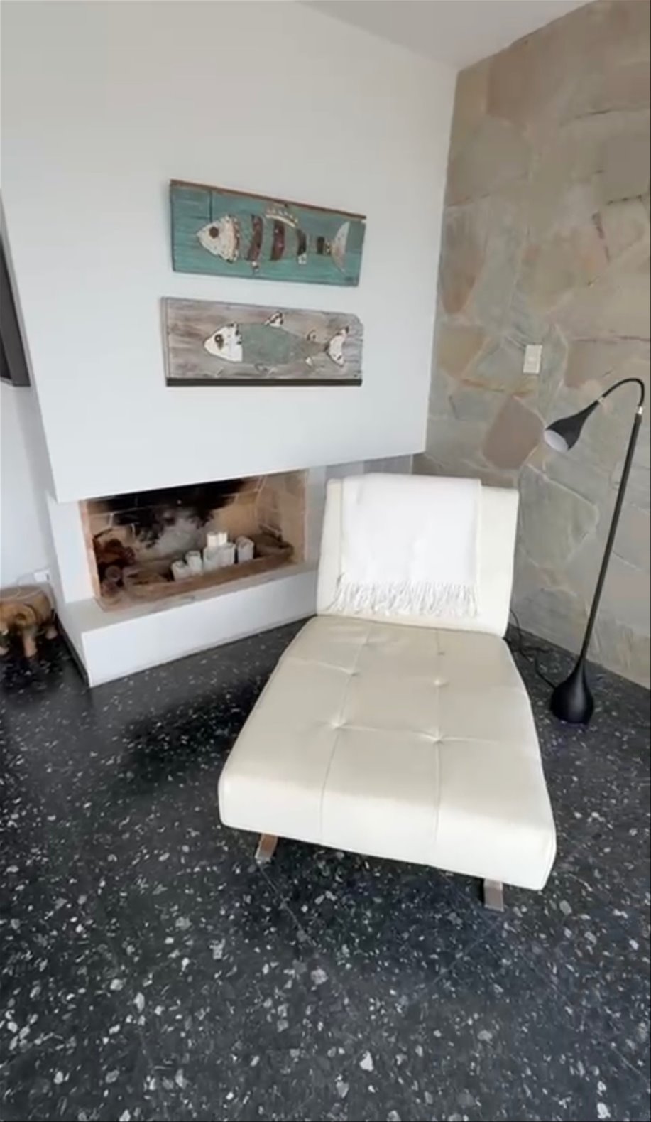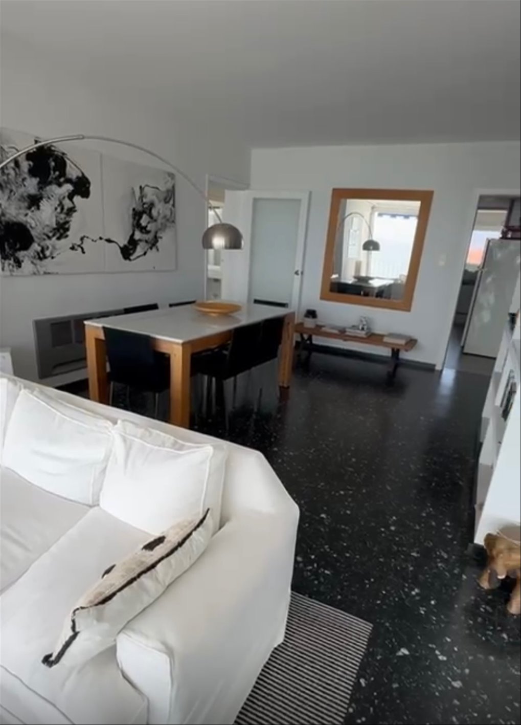 Amplio living comedor con piso alto con vista al mar y amplia terraza,