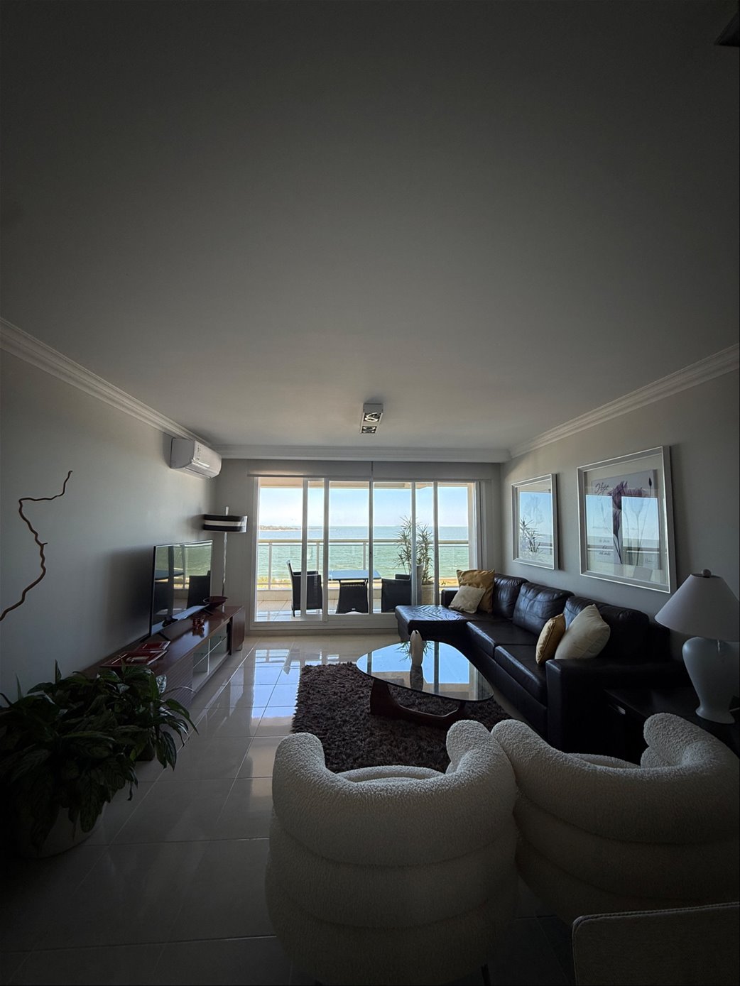 Amplio living comedor con vista al mar.
