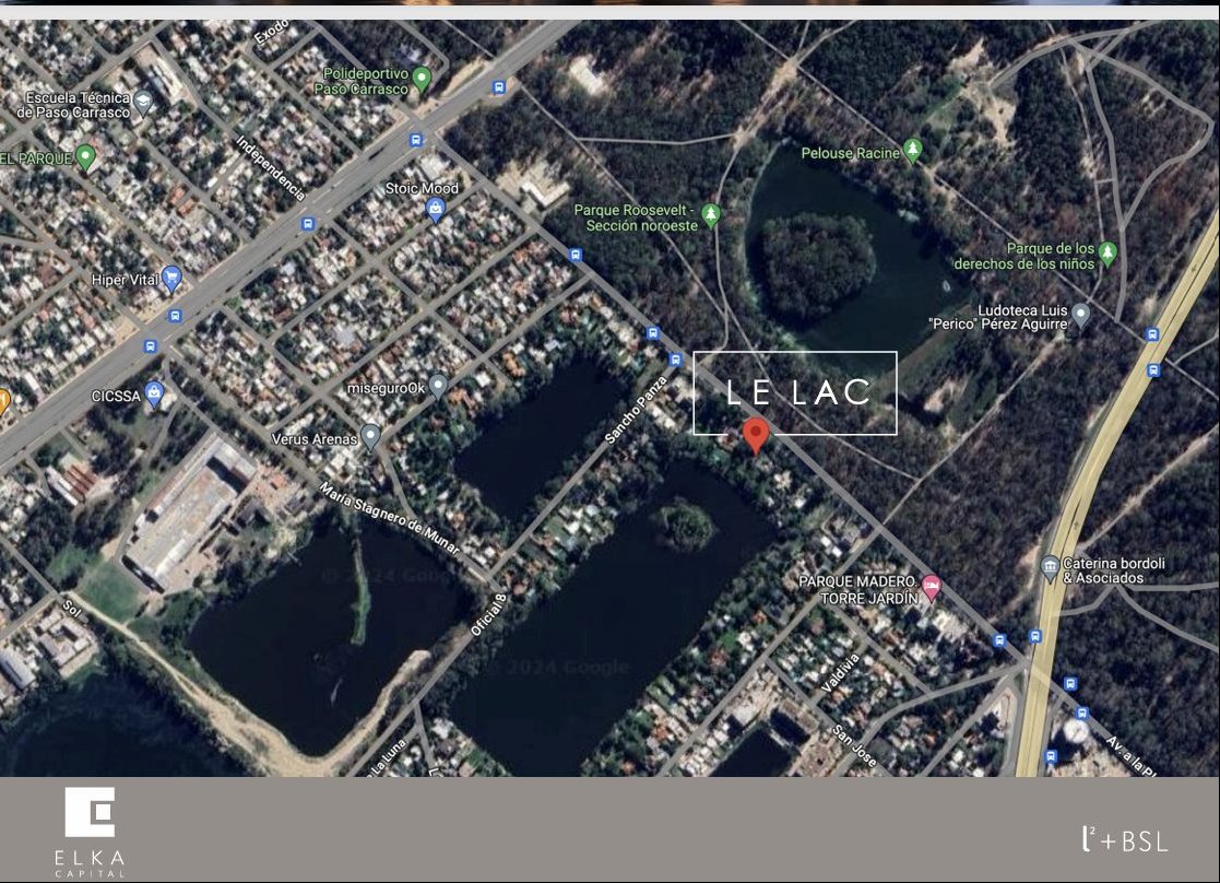 Le Lac es un desarrollo situado en Av.de la Playa frente al Parque Roosevelt,donde se combina el verde paisaje del bosque con el espejo de agua de Laguna Grande situada a su fondo.A 400 metros de Av.de las Américas, excelente conexión hacia Montevideo, Aeropuerto y Zona Este.