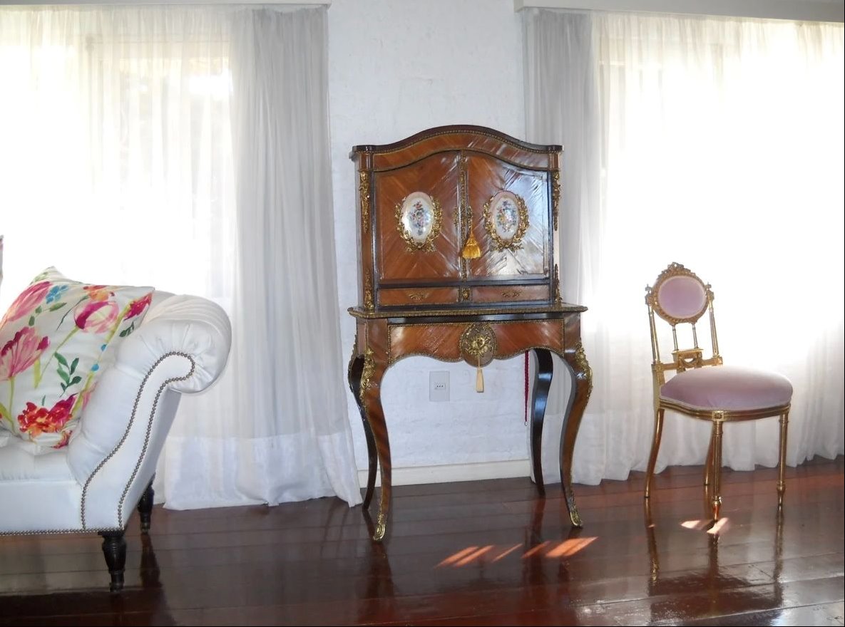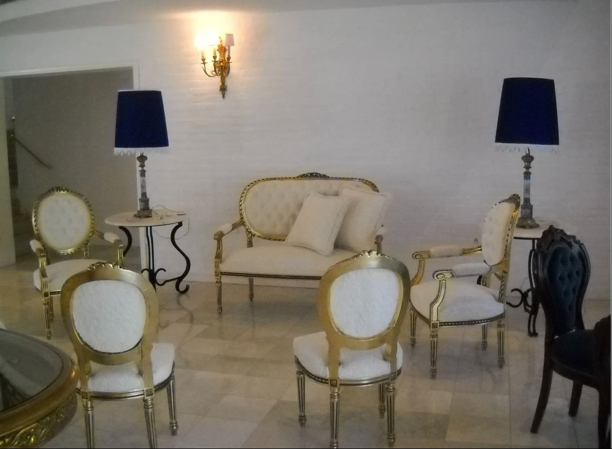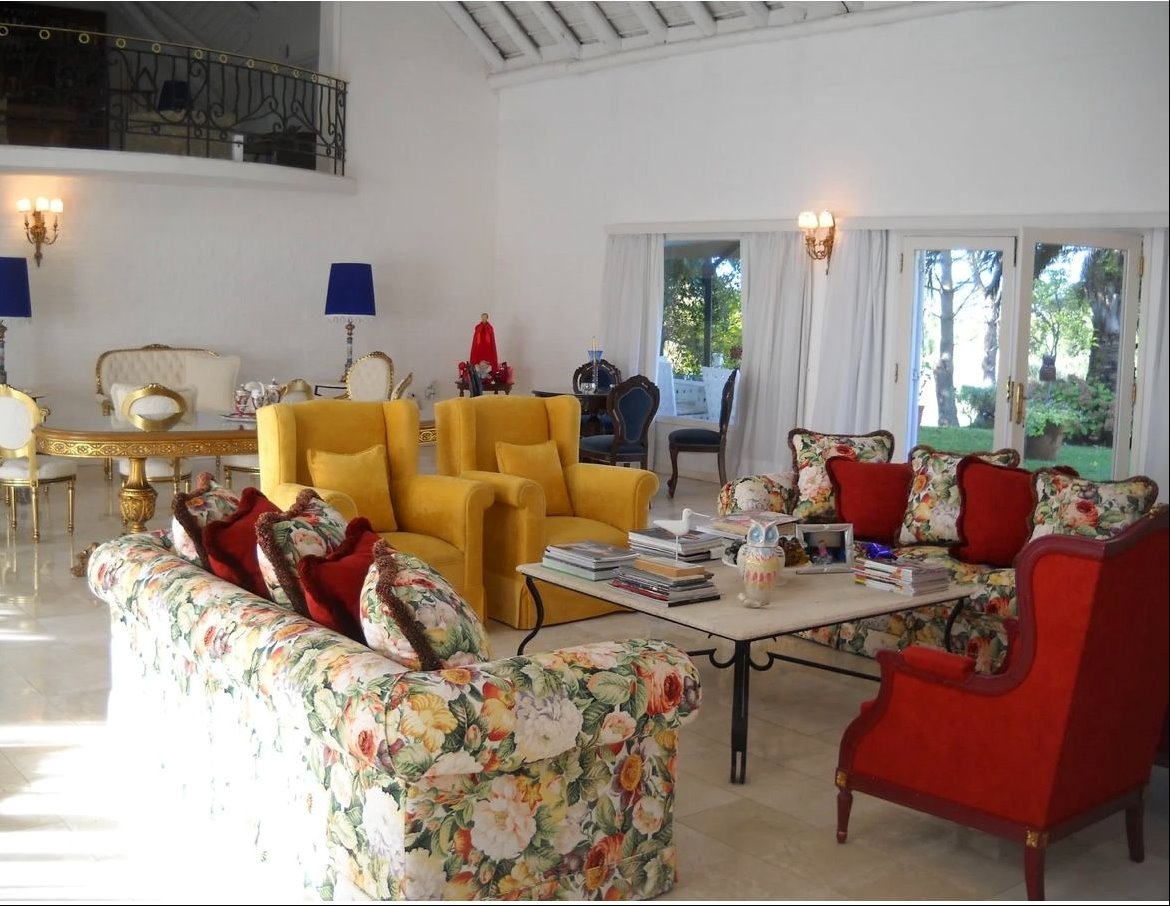 • Amplio living principal de 100 m² con ventanales y mobiliario de estilo francés.