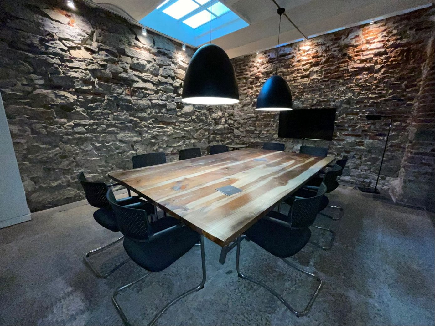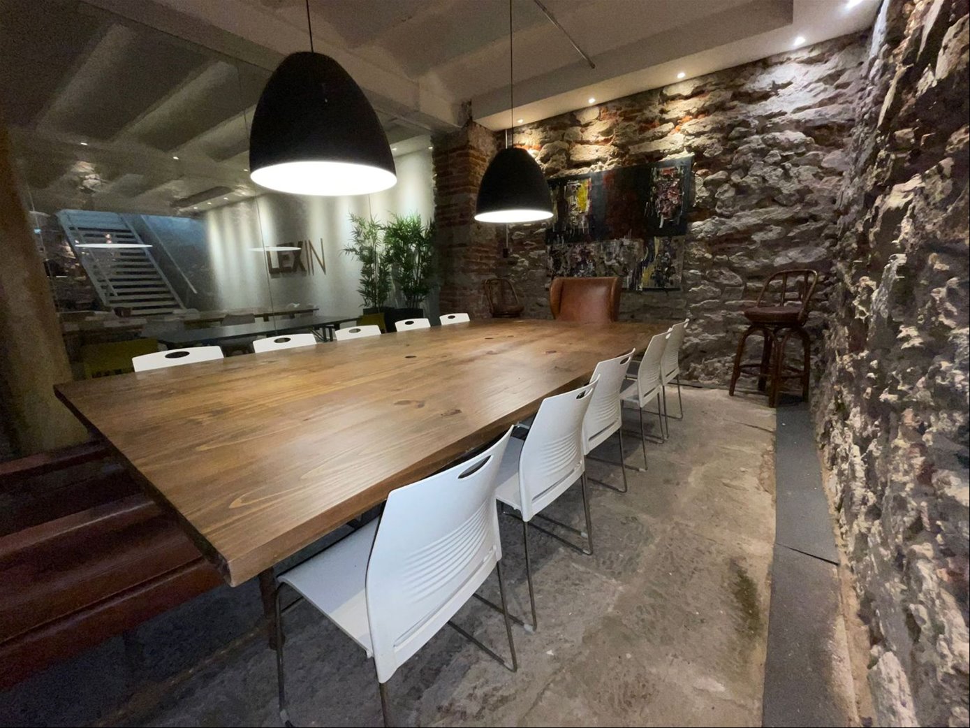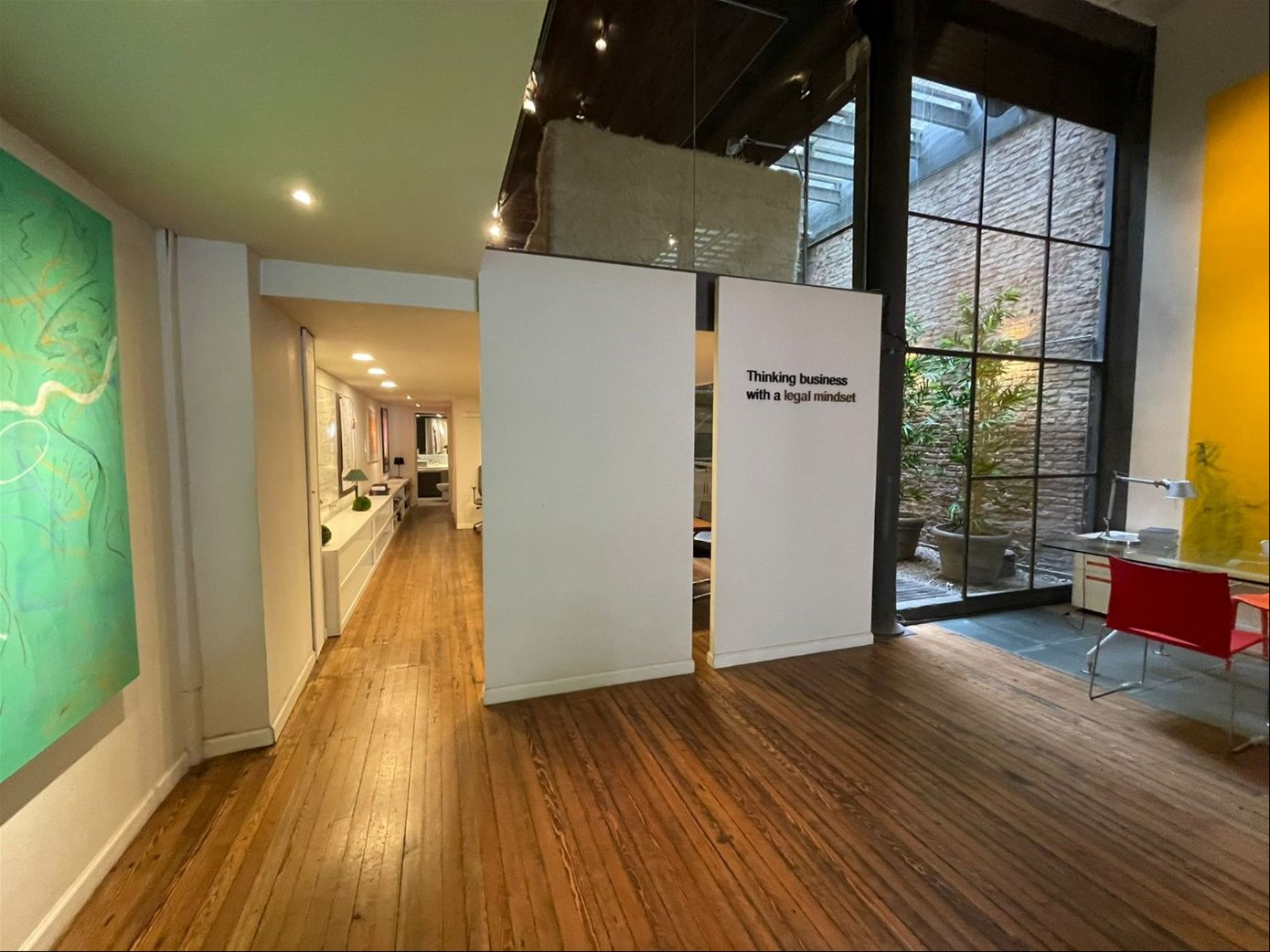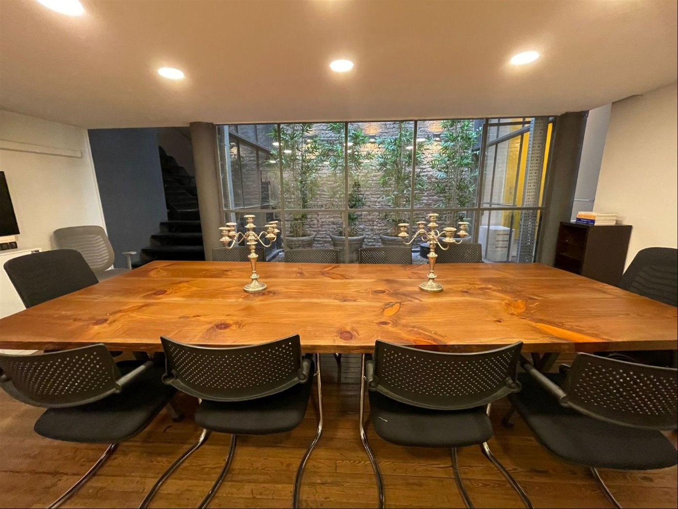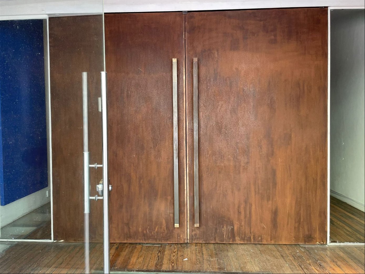 Una oficina con acceso a una de las calles mas emblemáticas de Ciudad Vieja, con puerta en cristal y una gran puerta principal en hierro añejado.