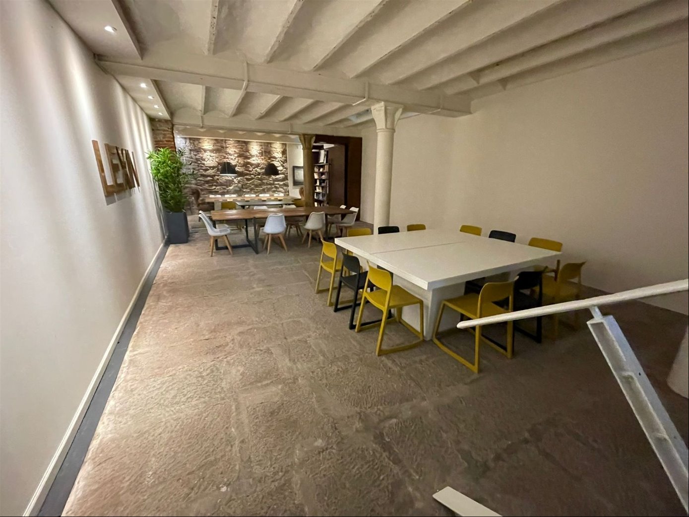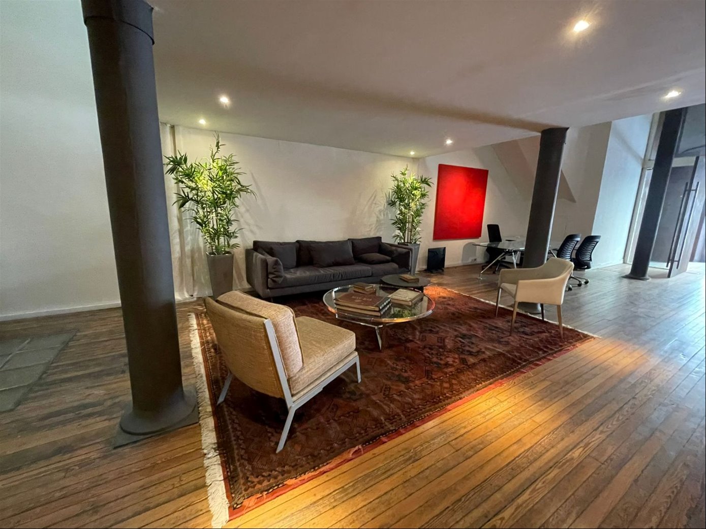 El inmueble se desarrollo en 230 mts en planta baja, con un diseño y amueblamiento difíciles de encontrar en inmuebles de alquiler. Un subsuelo con 150 mts de salas de reuniones y de capaciones que nos llevan a espacios de y privacidad inmejorables... Sus muros tienen historia. En Planta alta, 110 mts un entrepiso de ensueño que balconea a la planta principal, con una oficina central con acceso independiente, 2 sectores de baños con espacios privados y ropería.
