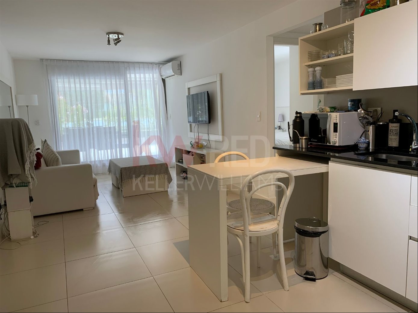El diseño interior destaca por su cocina integrada, equipada con muebles modernos y funcionales. El estado general de la propiedad es muy bueno. La calefacción por losa radiante y aires acondicionado en cada ambiente aseguran un ambiente cálido y agradable en todas las estaciones del año. Además, el apartamento cuenta con placares en los dormitorios, brindando amplio espacio de almacenamiento.